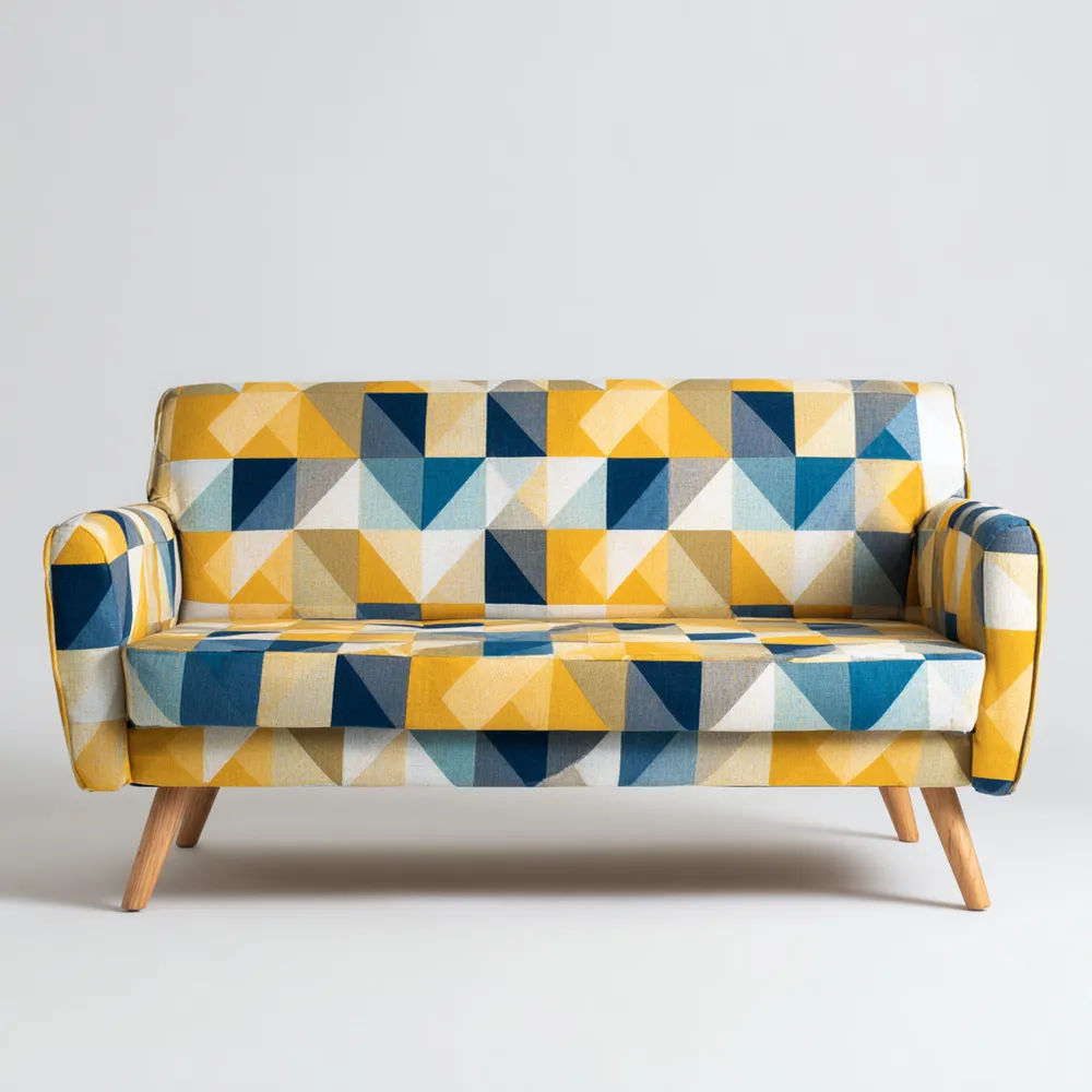 2-Sitzer-Sofa Stoffbezug 150x80x85 cm – Gelb/Blau – Modernes Design