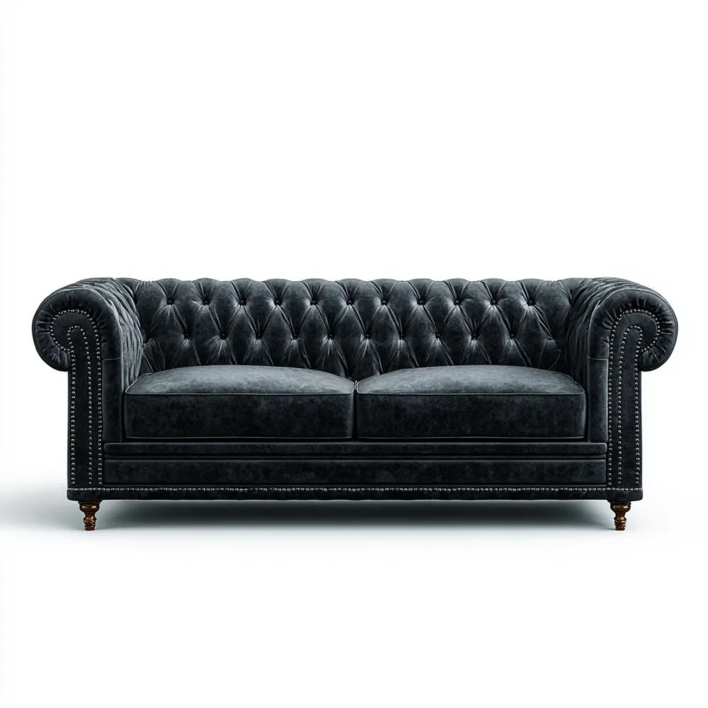 2-Sitzer-Sofa - Samt 200x90x75 cm - Dunkelgrau - Chesterfield-Design