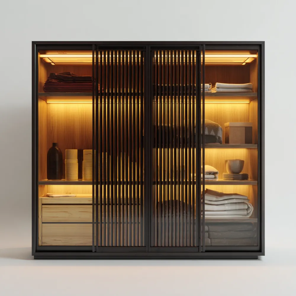 Dekoschrank Holz 120x200x50 cm – Schwarz – Moderne Beleuchtung