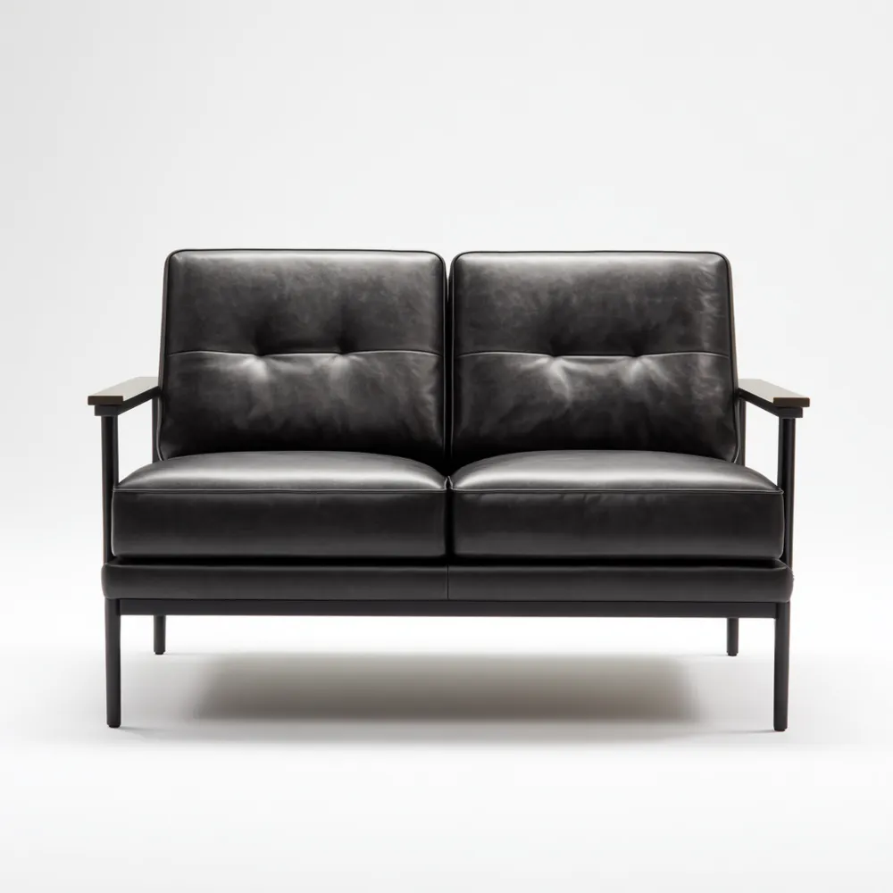 ProduktübersichtDieses 2-Sitzer Ledersofa vereint modernen Komfort mit industriellem Design, perfekt für urbane Wohnungen.