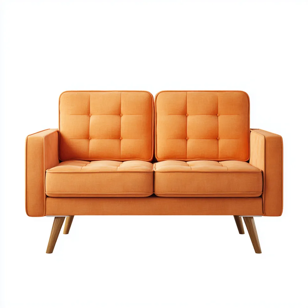 Material und VerarbeitungDas Sofa ist mit einem hochwertigen Stoff in lebendigem Orange bezogen und bietet eine robuste Holzkonstruktion.