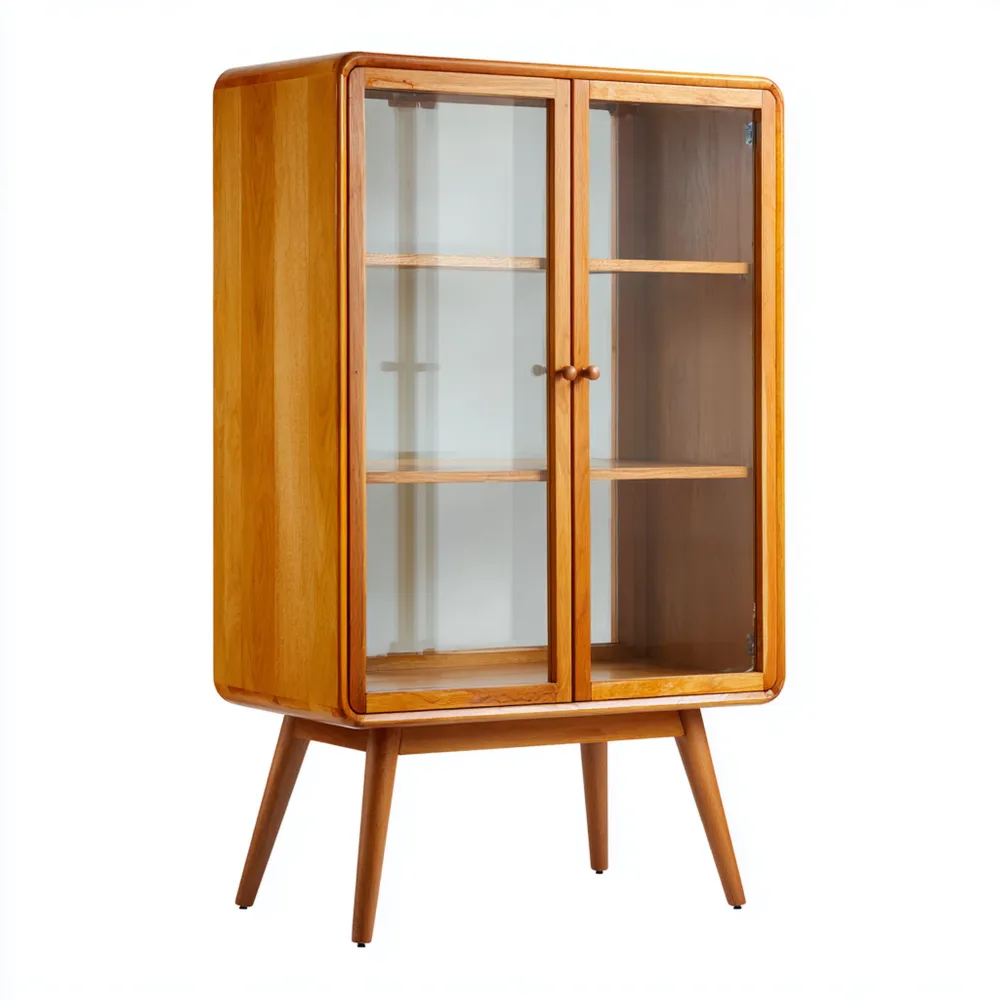 ProduktbeschreibungDiese stilvolle Vitrine im Retro-Stil besteht aus hochwertigem Kirschholz und bietet eine elegante Möglichkeit zur Präsentation Ihrer Schätze.